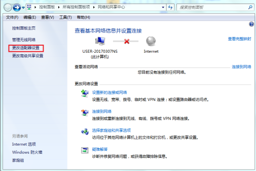 1.2 在新打开的窗口下,点击“更改适配器设置”;