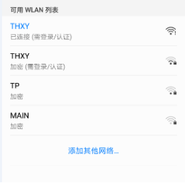 点击THXY无线信号,确认THXY提示“已连接”,即成功连接上THXY无线信号;