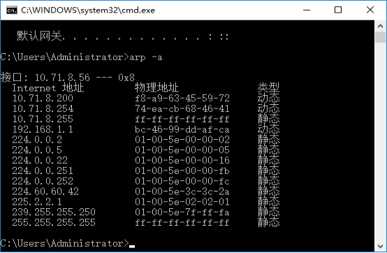 如果断网时发现网关对应的条目不存在或者物理地址不一致,则可判定为ARP引起的问题。可以通过手工绑定网关或通过软件来实现。