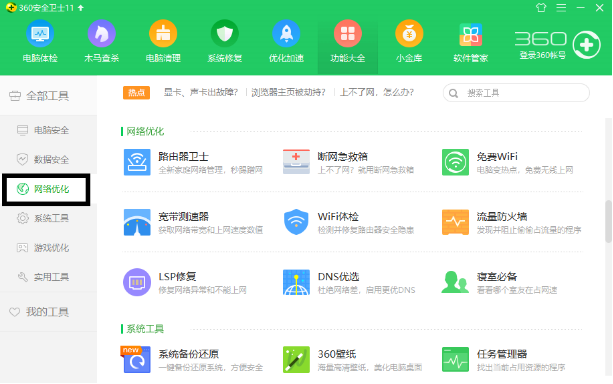点击“网络优化”: